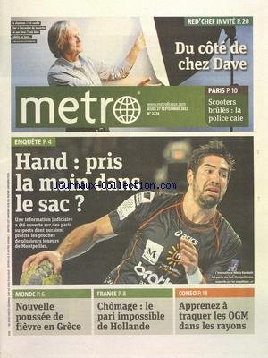 METRO [No 2274] du 27/09/2012 - DU COTE DE CHEZ DAVE - SCOOTERS BRULES - LA POLICE CALE - LES SPORTS - HAND - PRIS LA MAIN DANS LE SAC - NOUVELLE POUSSEE DE FIEVRE EN GRECE - CHOMAGE - LE PARI IMPOSSIBLE DE HOLLANDE - APPRENEZ A TRAQUER LES OGM DANS LES RAYONS PDF Online